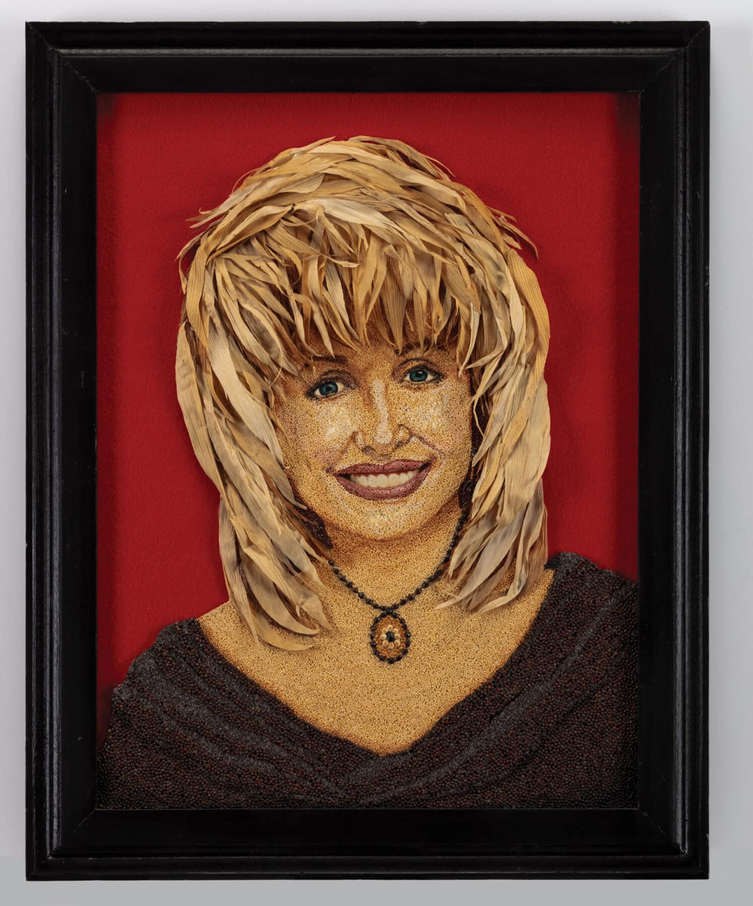 Colton succeeded in getting the judge’s attention and won Best of Show for her Nixon portrait—the first of 12 Best of Shows she would go on to win. Colton became known for her portraits of famous people, including presidents, movie and television stars, musicians, athletes, Grandma Moses (the elderly painter known for her quaint farm and small-town scenes of bygone eras), and Andy Warhol. After many years of consistent wins, Colton retired from the crop art competition in 1983 to give newcomers a chance.