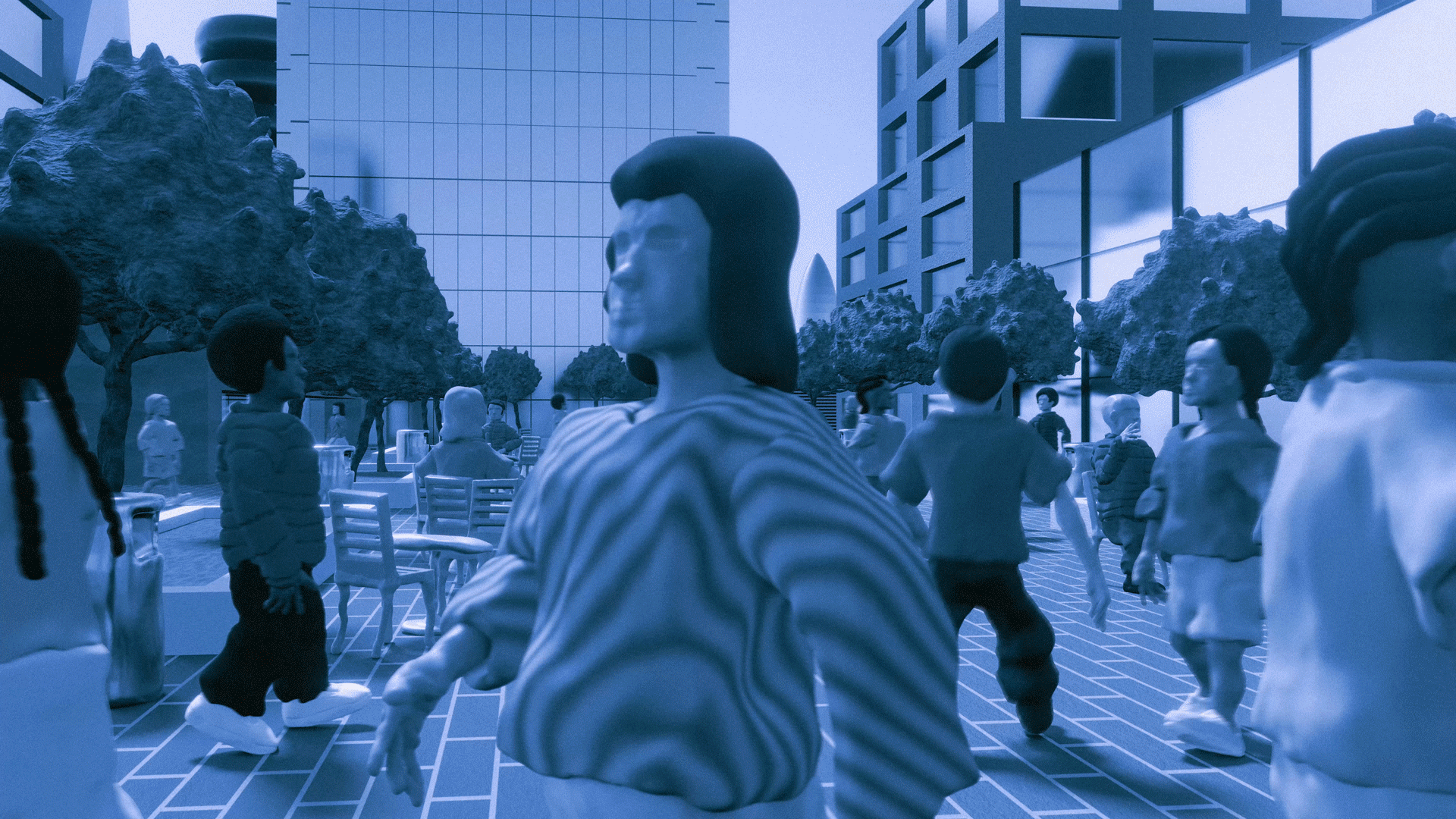 Sometimes I pretend my shadow follows me on my route, slinking over burned grass and steaming concrete. It’s less lonely this way in the empty downtown. When the cooling infrastructure team greets me from across the street, my shadow waves back, bending and stretching along the edges of buildings. We make our stops in the Bricktown district, checking out a few old-model umbras while construction workers replace the brick with a heatproof synthetic material that jiggles like jam until it sets. It takes five people to lift a cube of the stuff and plop it into the square hole. String 50 of them together and you have a street you can’t cook with.