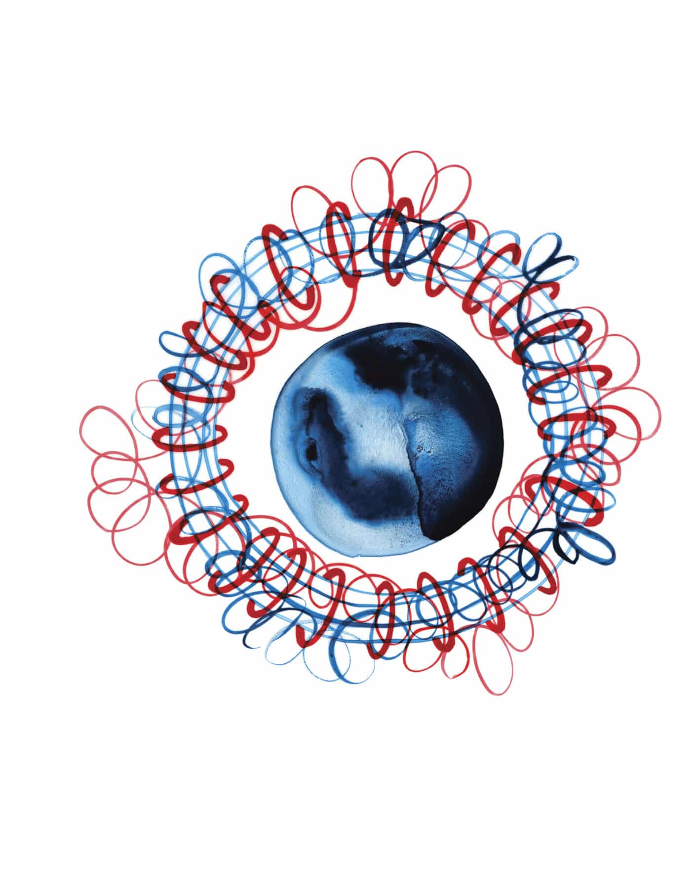 Over 13 years, Halloran created more than 650 paintings while collaborating with Thorne on their book, The Warped Side of Our Universe: An Odyssey through Black Holes, Wormholes, Time Travel, and Gravitational Waves (2023). This exhibition features a selection of 31 paintings published in the book alongside five new large-scale works that expand upon each chapter’s themes.