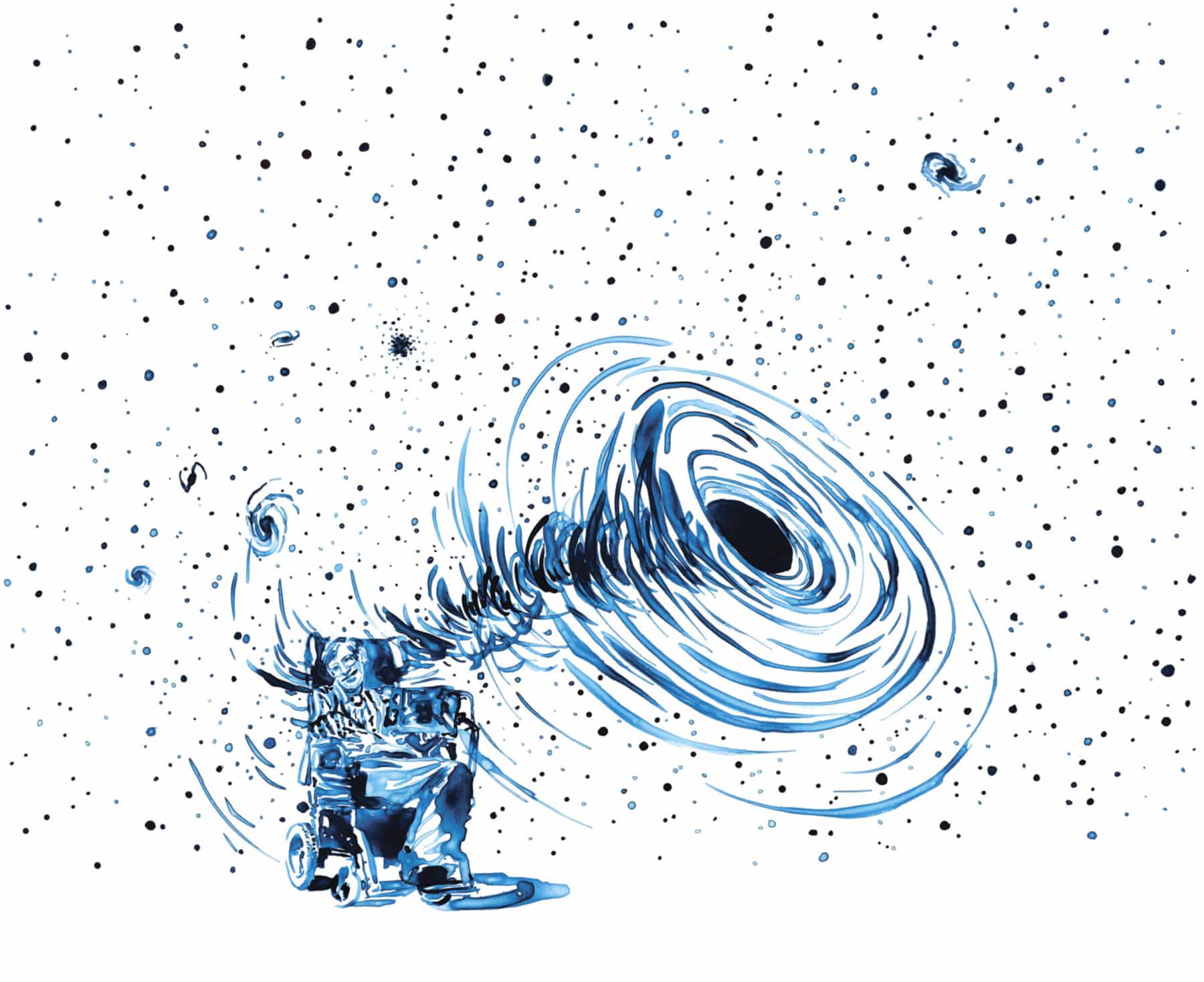 Halloran and Thorne’s collaboration began with prose and paintings that sparked dynamic conversations, leading to new artistic and scientific directions. For Halloran, the challenge lay in translating Thorne’s complex ideas about the unseen universe—concepts he conveyed to her through words and sketches—into simple, accessible paintings. For Thorne, the collaboration led to an unexpected transformation. Upon seeing his prose alongside Halloran’s paintings, he discovered its inherent poetic quality and transformed his scientific explanations into verse, making esoteric, complex cosmic phenomena more approachable and understandable. The result is an innovative approach to communicating the essence of complex science: an elegant synthesis of poetry and paintings.