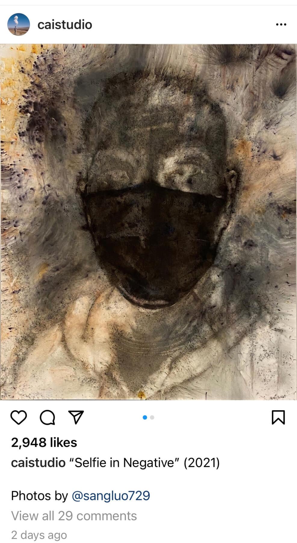 This selfie, done in Cai’s signature style using gunpowder was posted by @caistudio instagram account.