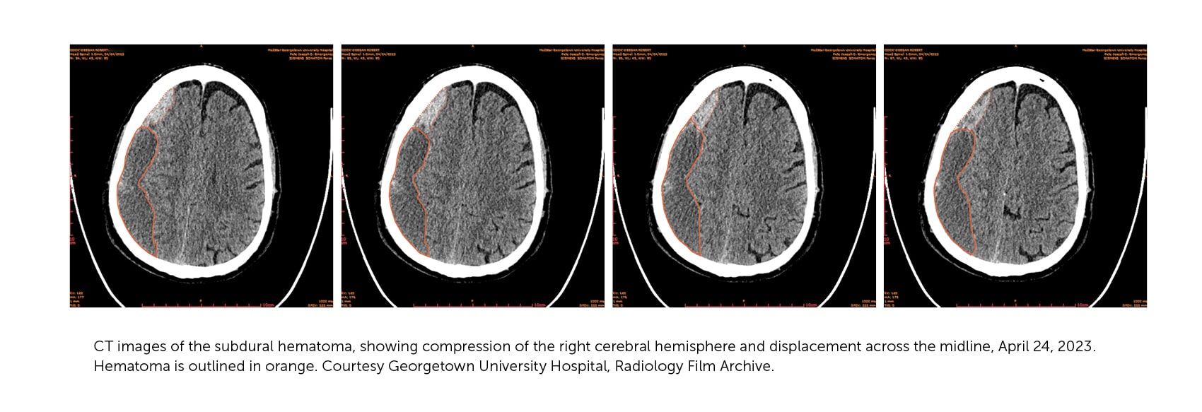 So, accompanied by my wife and daughter, I took a trip to Georgetown University Hospital’s emergency room, where the ER doc suspected I’d had a stroke. This provisional diagnosis was extremely distressing, as a stroke implied cell death caused by blocked blood flow or bleeding directly into the brain, which could leave permanent damage. Five hours into my visit, I was wheeled into the CT scan room, and then back to the ER, where we reviewed the results on a tiny screen.